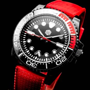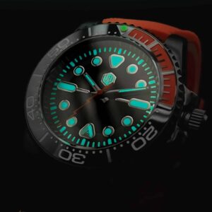 Designed by AndoAndoAndo, this dial has meticulous attention to detail comparable to the Seiko dials you know and love! The center of the dial is a gloss black surrounded by a flat black ring adding extra contrast. The indices and dual logos are polished silver and filled with a bright blue lume comparable to BGW9. The lumed minute track helps bring this smart design all together for a well-rounded dial.